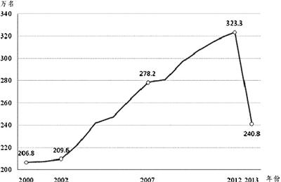 2000年—2013年发展党员数量变化情况