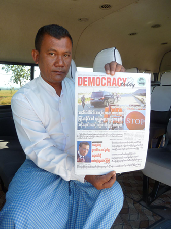 缅甸一份名为Democracy Today的报纸刊登了李克强总理的署名文章。(新华社记者 桂涛摄)