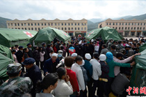 救援队员脱帽向遇难者致哀 受灾民众等待搬进救灾帐篷 甘肃岷县永星村搭起帐篷 支起宝宝临时之家 岷县灾区群众吃上“热汤面” 解放军战士安抚灾区小动物 岷县地震废墟上的“猪坚强”