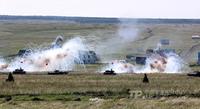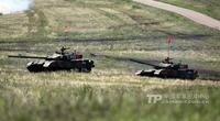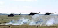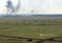 8月12日,“和平使命-2013”联合反恐军演中俄两军参演部队,在切巴尔库尔合同训练场举行全员全要素实兵协同训练。双方共出动官兵近900人,坦克、步战车、直升机等武器装备约130台。(来源:中国军网)