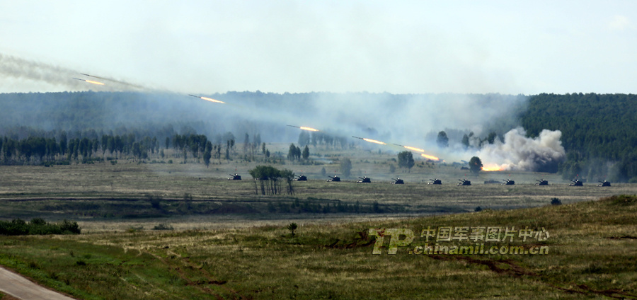 解放军重炮群齐射火力掩护中俄参演部队 (1/11)