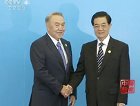 中国国家主席胡锦涛6月16日在克里姆林宫同俄罗斯总统梅德韦杰夫举行会谈。
