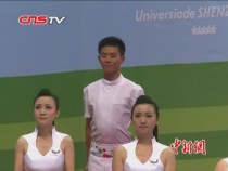 同期(大运会礼仪小姐 郑敏):我印象非常深的是,有一次我们脸托盘,然后两手就端着那个盘,然后盘上放着两瓶水,就这样一站就是一个小时,然后汗水流下都不能擦,也不能动,一直保持微笑,我觉得这样一个小时下来以后,我,说真的,我的手都快断了那种感觉,当时真的很想哭。