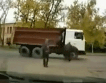• 实拍:“路人”撞向行驶中的大货车