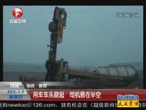 • 吊车车头跷起将司机悬在12米高驾驶室