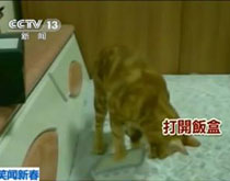 实拍:猫咪开饭盒 自己动足取食