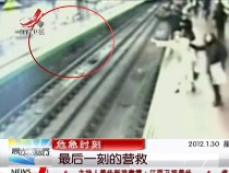 实拍:列车进站 勇士跳下站台拖救跌落男子