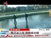 危险瞬间:男子冰上玩耍突然掉进冰窟