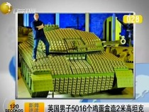 • 英国男子5016个鸡蛋盒造2米高坦克