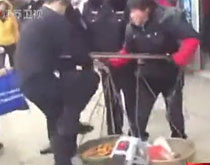 实拍:城管执法 当街踩烂女摊贩金桔筐