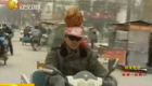 男子头顶大公鸡为自家鸡蛋做广告