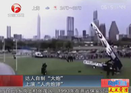 实拍达人自制"大炮"上演"人肉炮弹"