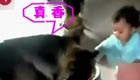 实拍超萌宝宝跟狗狗"抢"食吃