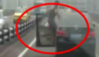 醉汉街头耍疯 咬民警要撞车