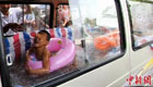 男子将面包车改成泳池供子游泳