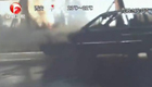 轿车自燃难扑救 幸好遇上洒水车