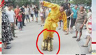 韩国:儿童赤脚站冰块比耐力