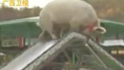 女士头顶猪屁股帮其“过斜坡”
