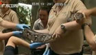 实拍:7米长巨型蟒蛇体检