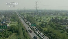 空中直击上海出城高速大拥堵