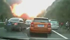 实拍怀化侧翻槽罐车再次发生闪燃