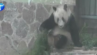 实拍大熊猫刷小脾气卡主屁股自脱身