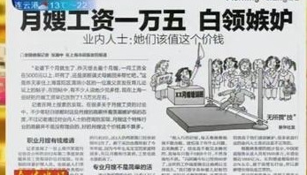 月嫂工资一万五引白领嫉妒