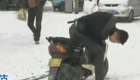 内蒙古强降雪致道路结冰 汽车不断抛锚
