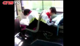 拍客:小学生公交车上忙写作业