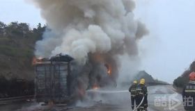 拍客:大货车离奇自燃 火光冲天