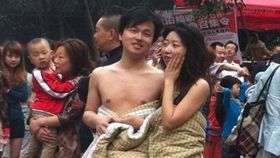 直击"圣诞泳装裸跑"