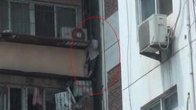 老人怕被抓 被困6楼夹缝