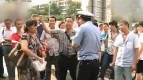 闯红灯行人大战交警实录