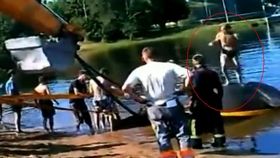 男子发现鸭子被冻湖面 跳湖破冰救援