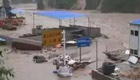 四川成都暴雨 铁驳船“卡壳”宝成铁路桥