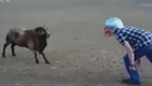 男子大战羊斗士 被撞后狼狈逃窜