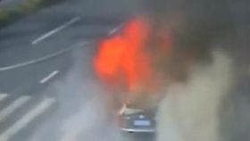 上海持续高温 街头轿车自燃