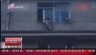 实拍:男孩头卡防盗网六楼悬空 惊呆众人