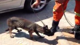 流浪母狗困下水道两天