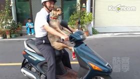 聪明狗狗亮“绝活”陪主人坐摩托