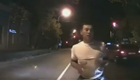 实拍醉酒男半夜拦车跳热舞