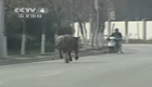 实拍疯牛发飙顶伤路人 特警开枪击毙