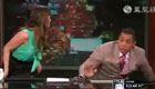 美女主持人直播球赛 被足球砸中脑袋