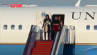 美第一夫人米歇尔抵京 着拼色连衣裙挥手致意