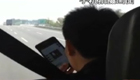 实拍广东中山一公交司机开车玩手机