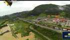 航拍广东阳山洪灾 山洪汹涌冲向高速路