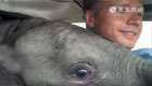 被营救孤儿小象坐上飞机与飞行员嬉戏