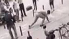 实拍小伙当街暴打老人 反遭抱脚摔落荒而逃