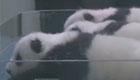 全球首例大熊猫三胞胎首次全部睁眼