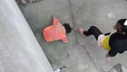 实拍女子在墙角暴打孩子